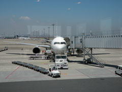 朝、羽田行きのリムジンバスを待っていると、首都高速で事故渋滞があり、通常より1時間以上かかってしまうとのこと。いきなりの洗礼で、自転車をかついで電車とモノレールを乗り継いで羽田へ。前回同様、自転車は破損に関する承諾書にサインして無事預かってもらえた。
